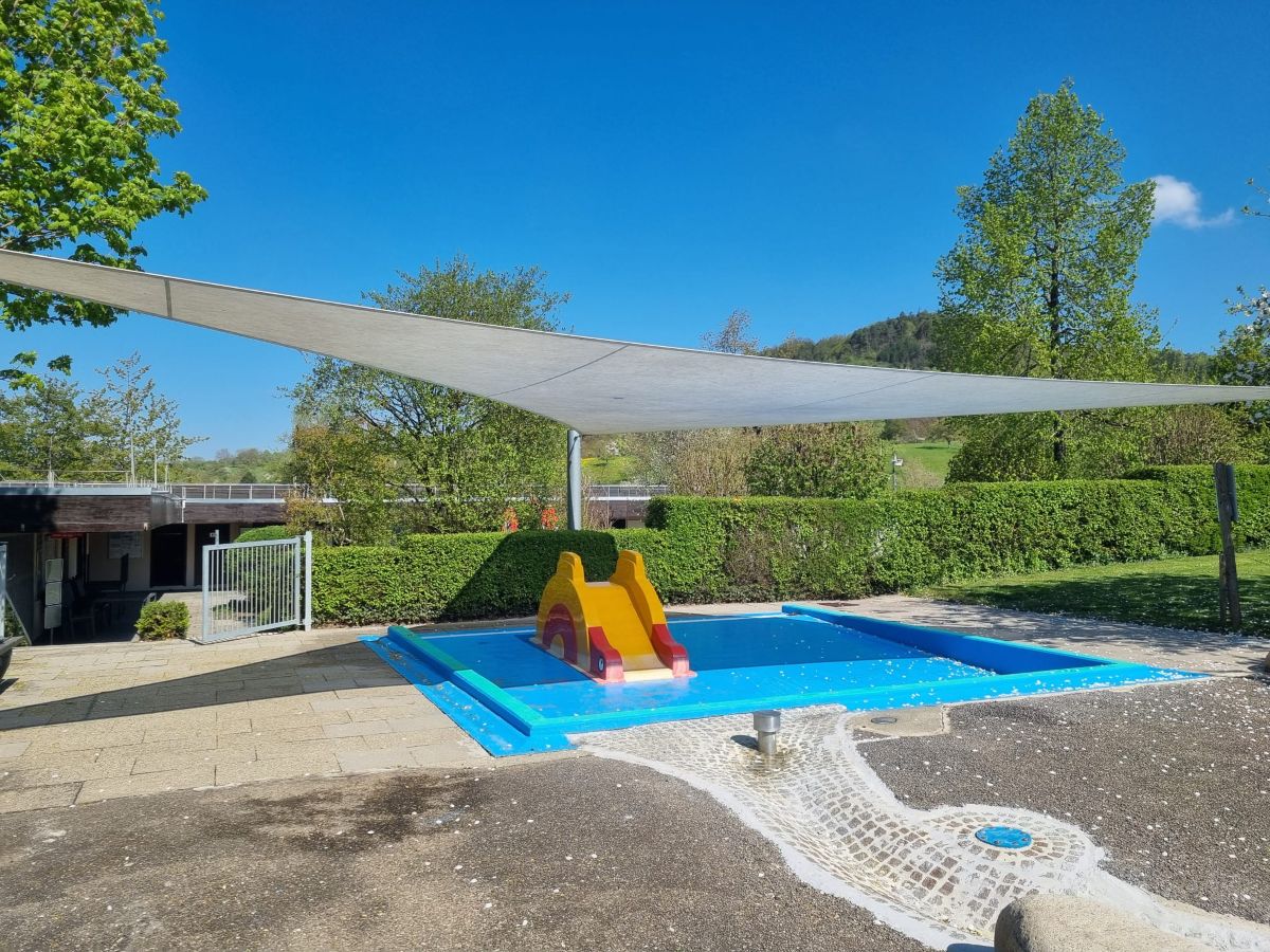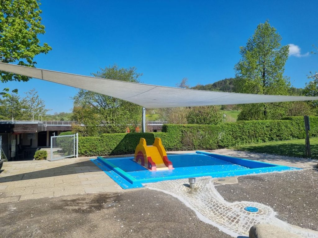 Das Grünteam hat den Bachlauf für unsere kleinen Wasserratten wieder in Schuss gebracht und den Sonnenschutz installiert – damit auch die Sonne künftig fair spielt und niemand zu sehr ins Schwitzen kommt.